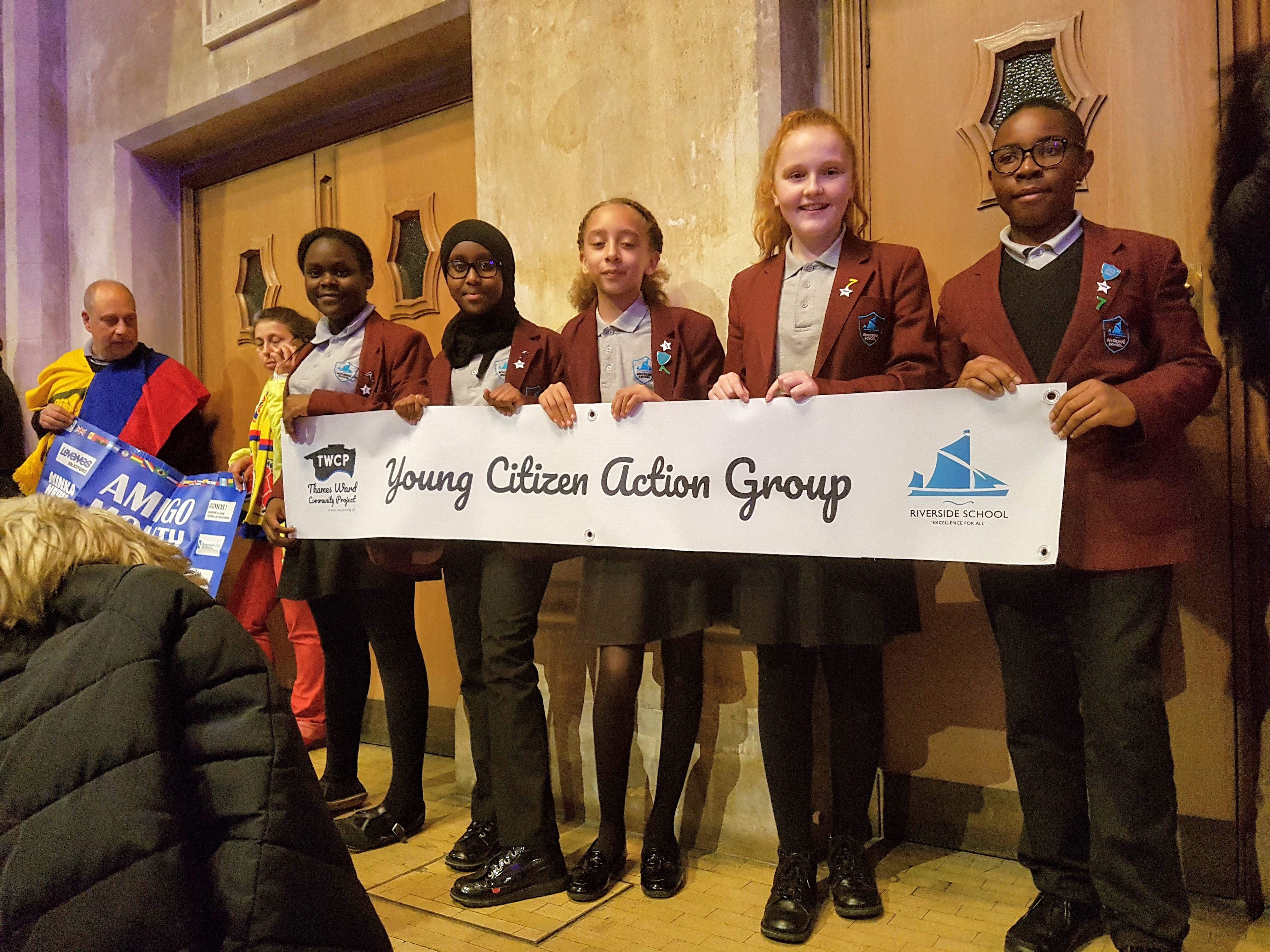 18 members of the Young Citizen Action Group (YCAG) from Riverside School went on a trip to St George’s Cathedral in central London yesterday to hear from Mayor of London Sadiq Khan on how he is delivering on promises made to London Citizens member organisations prior to his election in 2016.